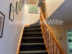 Mitten auf dem Grundstück steht das Einfamilienhaus. Im Erdgeschoss befinden sich neben dem großzügigen Wohn- und Essbereich, die Küche mit angeschlossenem Hauswirtschaftsraum, ein Gäste – oder Arbeitszimmer, das Gäste-WC und die Diele mit kleinen Nebenflächen.